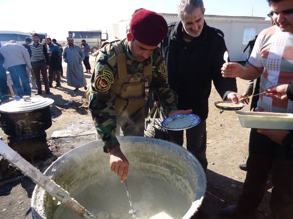 راننده ی عراقی ما داره با یکی از بچه های اتوبوس صحبت می کنه و دوست ما هم با عربی شکسته بسته ای با او حرف می زنه می روم کنارشان تا ببینم از چه صحبت می کنند. عاشق ایران است و زائران ایرانی را مجانی جابه جا می کتد. از این صحبت می کند که « شیعه مظلوم است ما شیعه ایم شما شیعه اید شیعه مظلوم است »